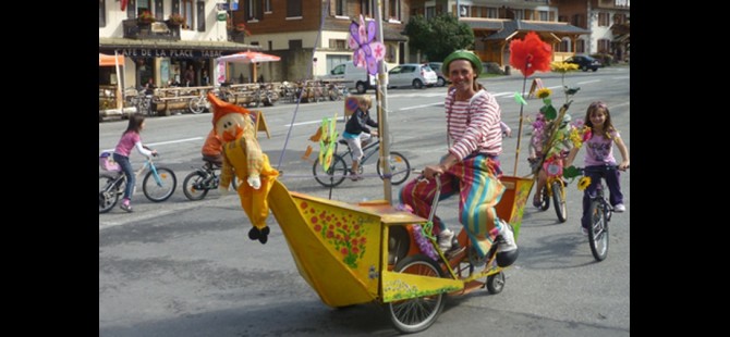 Le clown fleuri déambule dans les rues avec son bateau sonorisé !